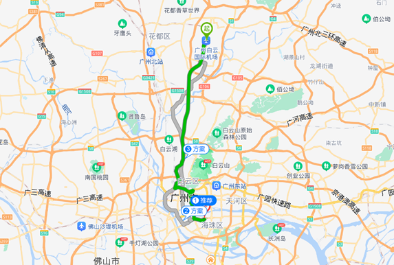 交通方案A:白云国际机场—广东轻工职业技术学院